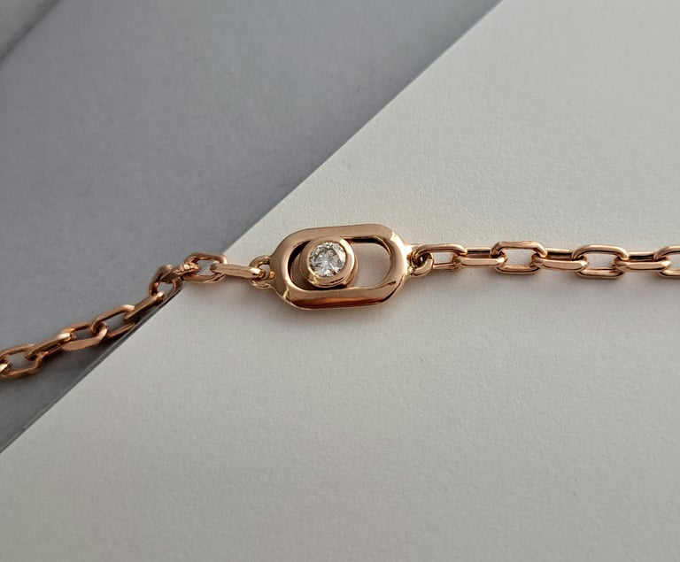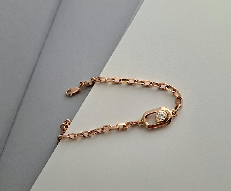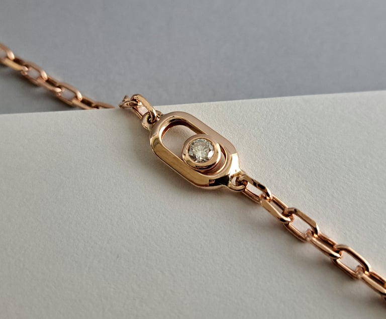 Poliruota 585 prabos apyrankė su judančia 0,72ct deimanto detale. Mažytis stebuklas kasdien judantis tavo ritmu.