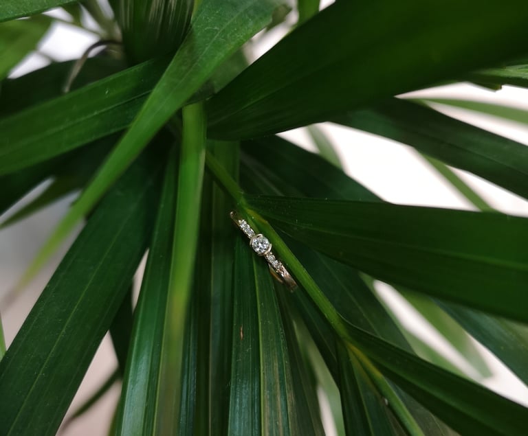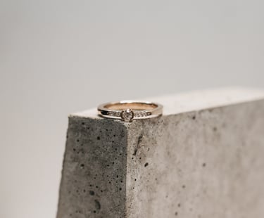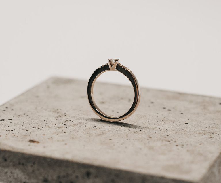 Poliruotas 585 prabos raudono aukso žiedas su 7 briliantais