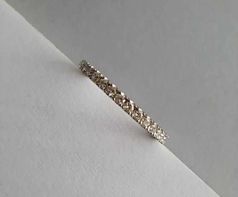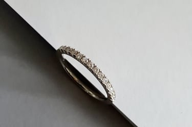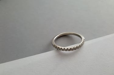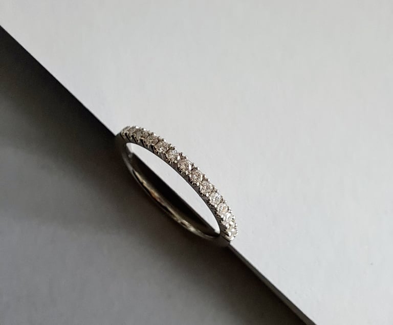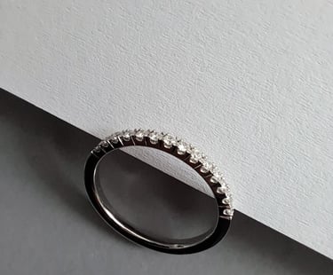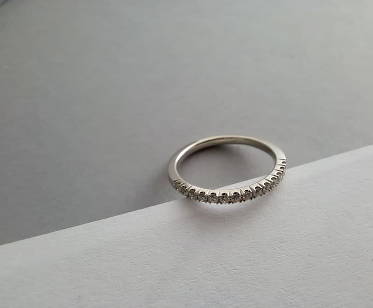 Poliruotas ir dengtas rodžiu 585 prabos balto aukso 2mm pločio žiedas su 14 vienetų 0,03ct briliantais