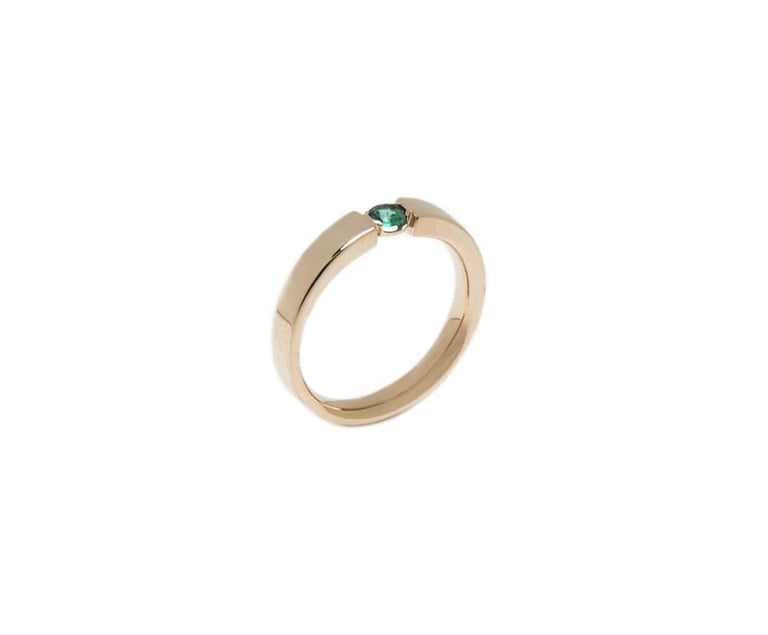 Poliruotas 585 prabos aukso žiedas su natūraliu smaragdu.